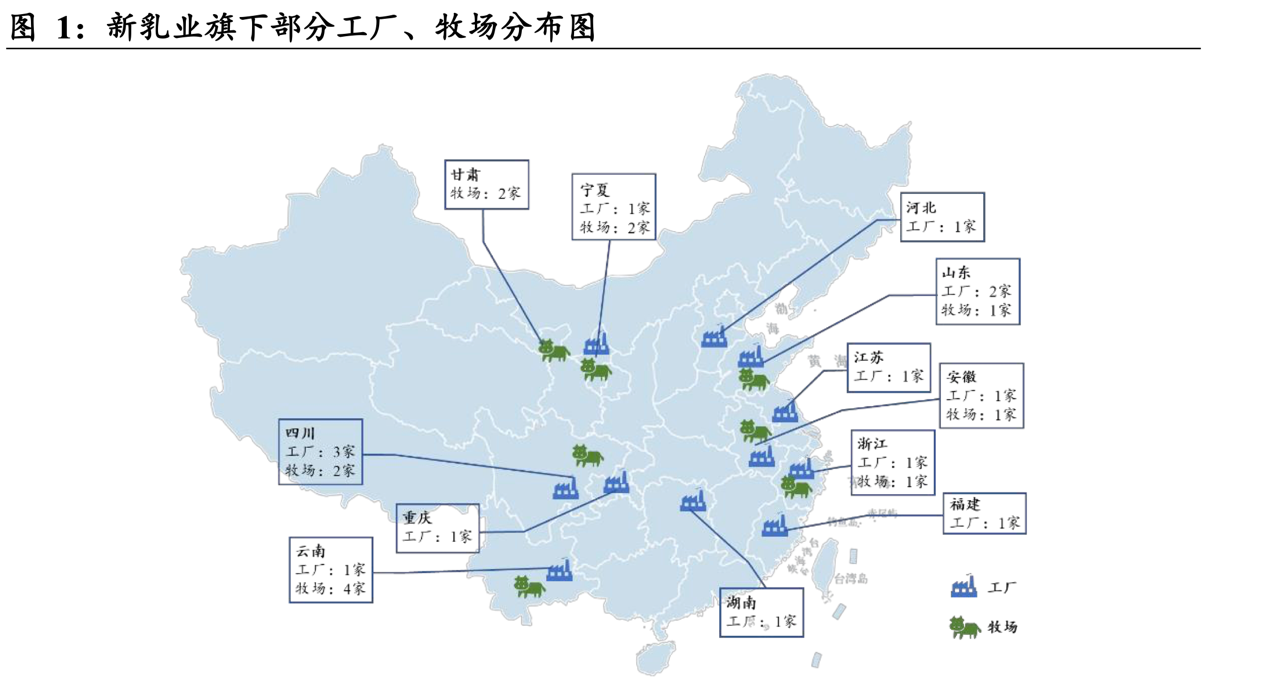 新乳业脱胎于养猪大户刘永好的新希望(000876)乳业板块,后续收购合并了安徽白帝、重庆天友、杭州双峰、青岛琴牌、邓川蝶泉、苏州天香等12家乳企,新乳业发展成盘踞西南、华东的区域性龙头乳企。