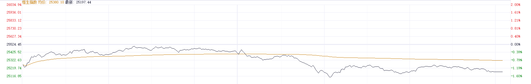 港股三大指数集体低开低走。截至收盘,恒生指数跌1.36%,报25176.93点;恒生科技指数跌2.72%,报5490.76点;国企指数跌1.18%,报9038.27点。