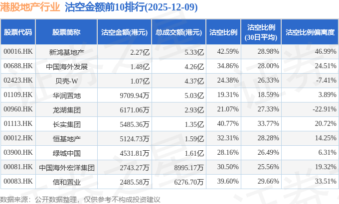 从沽空金额来看,新鸿基地产、中国海外发展、贝壳-W沽空金额位居行业前三,分别为2.27亿港元、1.48亿港元、1.07亿港元。