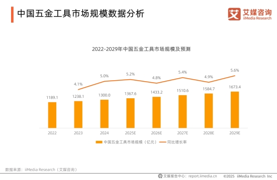 在国内经济持续发展、制造业不断升级的浪潮中,中国五金工具市场正稳步前行。iiMedia Research(艾媒咨询)数据显示,2024年中国五金工具市场规模达1300.0亿元,同比增长5.0%,预计2029年将突破1600亿元。基础设施建设、工业自动化、智能制造等领域的高速发展,为五金工具行业注入全新发展契机。作为重要细分领域的五金刀剪行业,也随之驶入发展快车道。