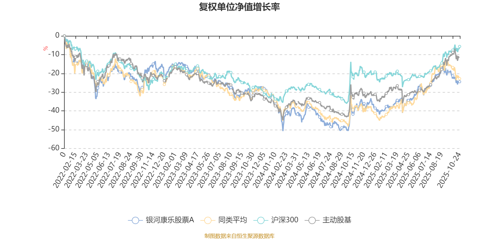 截至10月24日,银河康乐股票A近三个月复权单位净值增长率为-1.34%,位于同类可比基金16/57;近半年复权单位净值增长率为14.00%,位于同类可比基金43/57;近一年复权单位净值增长率为22.31%,位于同类可比基金31/55;近三年复权单位净值增长率为-7.32%,位于同类可比基金33/48。