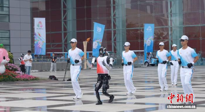 图为人形机器人“夸父”正在进行火炬传递。广东移动供图